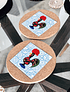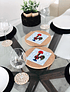 Conjunto de 2 bases de tacho em cortiça natural com azulejo embutido, inspirado na lenda "galo de Barcelos" que remonta a uma época medieval na mesma cidade, para usar na sua mesa .