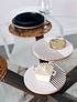 Base set table in painted white cork, round with stripe-shaped detail inspired by the city of Porto.